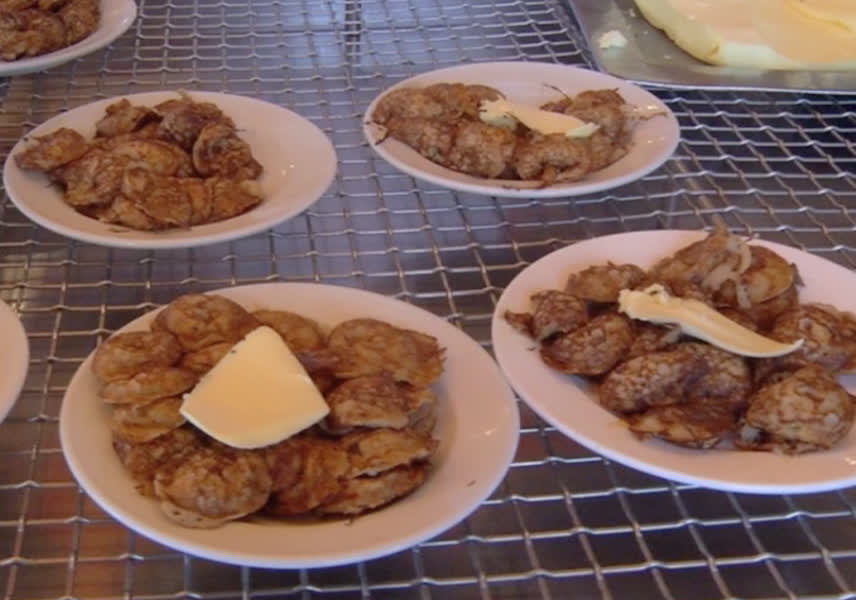 Traditiegetrouw lunchten de burgemeester en de wethouders vandaag bij de poffertjeskraam op de kermis.