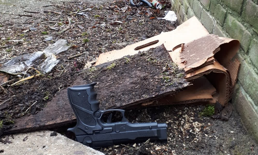 De politie heeft gisterochtend in een brandgang bij de Patersweg een nepvuurwapen gevonden.