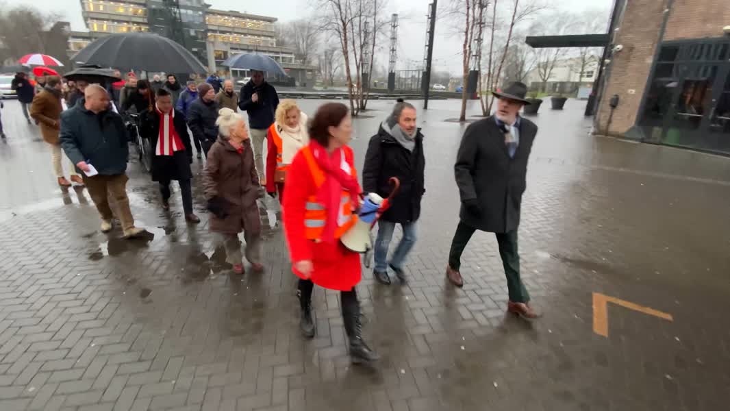 Om dat signaal nog een keer af te geven, kwamen meerdere Dordtse gemeenteraadsfracties en sympathisanten donderdagavond bijeen op het Energieplein voor een protestmars. Na een wandeltocht in de stromende regen door vrijwel verlaten binnenstad sprak een groot aantal aantal partijen op het Stadhuisplein nog een keer hun zorg uit over de uitstoot van PFAS.