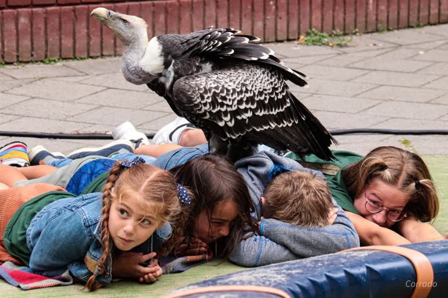 De kinderen konden donderdag middag uilen op hun arm laten landen, gieren over hun rug laten lopen en op de foto gaan met een grote zeearend. “Ze hebben gegild en gelachen! Volgens mij vonden ze het heel tof,” zegt Van Ballegooijen.
