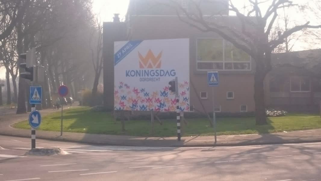 De stad kleurt steeds meer oranje. Sinds gisteren wordt het bord aan de Crayensteynstraat gebruikt om Koningsdag te promoten.