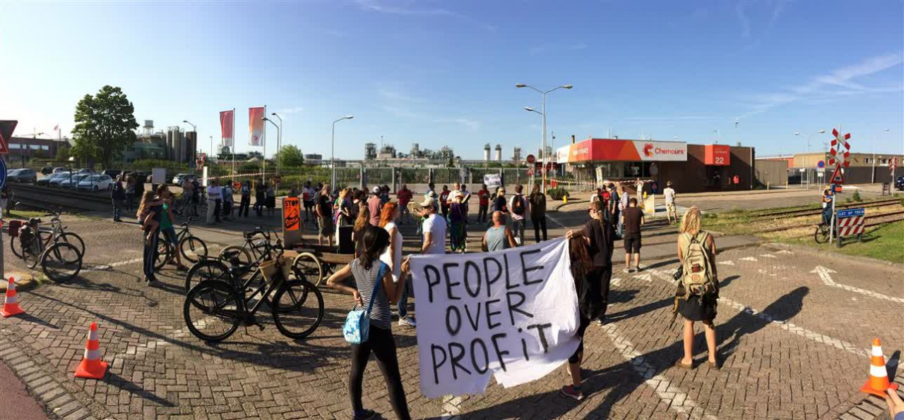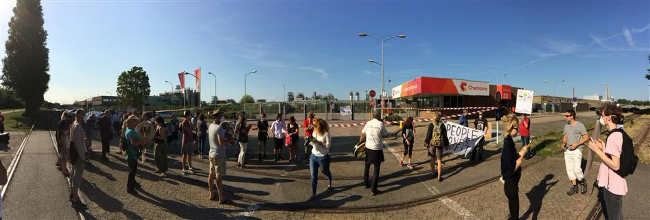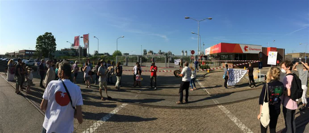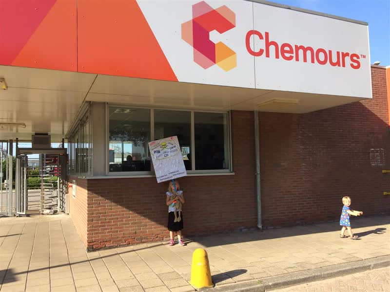 Vrijdagmiddag was er zowaar een protestoptocht in de stad en werd voor korte tijd de toegangspoort van DuPont - Chemours aan de Baanhoekweg geblokkeerd.