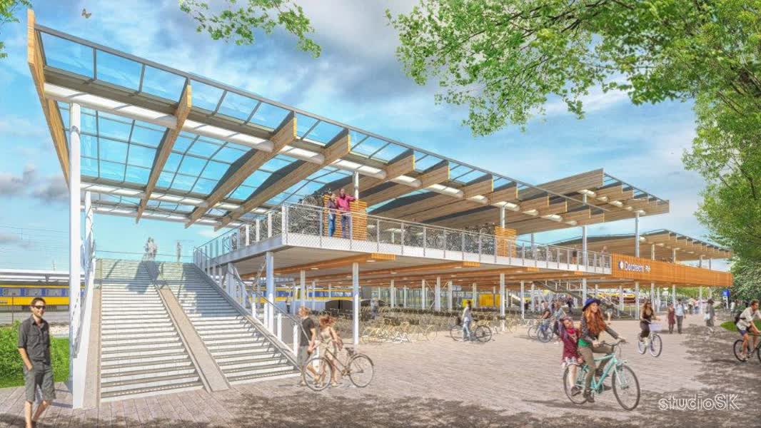 Puzzel gelegd voor bouw entree met fietsenstalling station Dordrecht