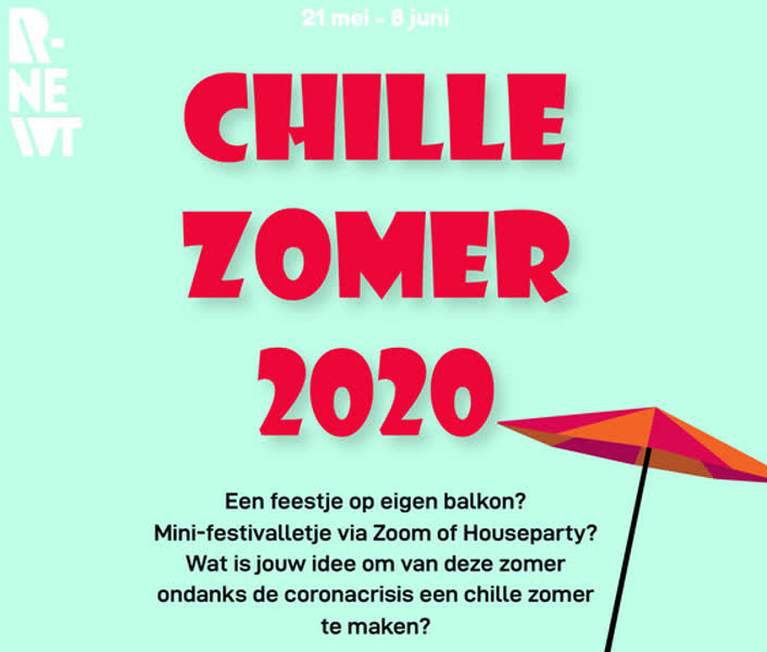 Jongerenwerk R-Newt doet zijn best om de zomer voor jongeren alsnog ‘chill’ te maken. Daarom lanceren zij de campagne ‘Chille Zomer’. Jongeren tussen de 12 en 27 jaar mogen ideeën indienen om er een leuke zomer van te maken. De leukste ideeën maken kans op een geldbedrag om de activiteit uit te voeren.