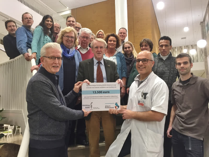 Maar ongeveer de helft van het overgeschoten kapitaal, 13.500 euro, werd geschonken aan het Vriendenfonds. Dit geld wordt besteed aan leukemie-onderzoek. Daarom werd de cheque overhandigd aan de voorzitter van het Vriendenfonds, Wim de Leur, en internist Mark-David Levy, de coördinator van het onderzoek.