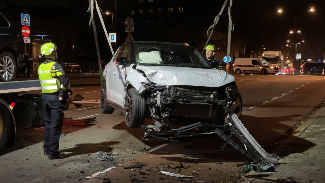 Het ongeluk gebeurde rond halfnegen ter hoogte van het Onderwijsmuseum. Het nabijgelegen kruispunt met de Spuiweg is nog de hele avond afgesloten geweest: eerst voor politie-onderzoek, daarna om de beschadigde voertuigen weg te slepen.