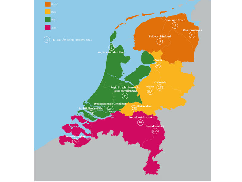 Niet alleen het Rijk neemt deel in deze Regio Deals. Uit de regio zelf moet minimaal 50% worden bijgedragen door publieke partners. Dat betekent voor deze regio dat minstens een bedrag van 45 miljoen beschikbaar komt.