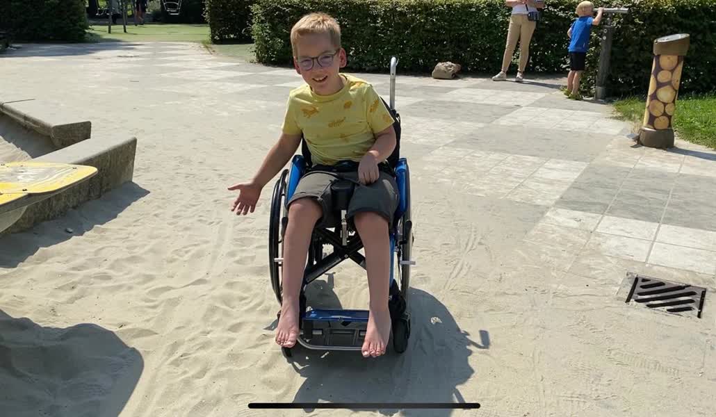 Sindsdien heeft hij zijn zinnen gezet op de speeltuin in het Weizigtpark in Dordrecht. Dáár moet zo’n speciale glijbaan voor rolstoelers komen, als het aan hem ligt. “We hebben al een ontwerp, door een ontwerpster gemaakt”, vertelt moeder Esther trots. “Dus we zijn nu echt op zoek naar bedrijven die ons kunnen helpen om de glijbaan te produceren en de gemeente om hem überhaupt te mogen plaatsen.”