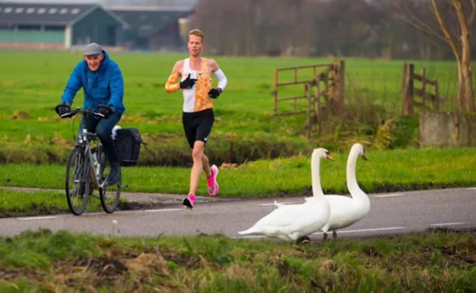 Ja, heel wat monden vielen open toen Hoornweg op 19 december de details van zijn trainingsloop in de polder tussen Papendrecht en Bleskensgraaf online deelde met de buitenwereld. Omdat er vanwege de coronapandemie geen andere wedstrijden waren, deed hij eens wat geks. Hij ramde de marathonafstand eruit in een indrukwekkende 2 uur, 18 minuten en een handvol seconden. Er zijn maar weinig marathonlopers die dat kunnen en al helemaal niet tijdens een training.