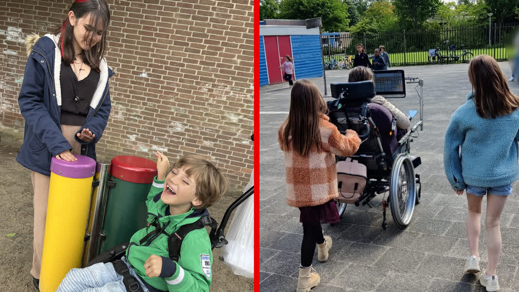 Het is druk op het plein van kinderopvang Het Kristal in Sterrenburg. De kinderen zijn in de weer me...