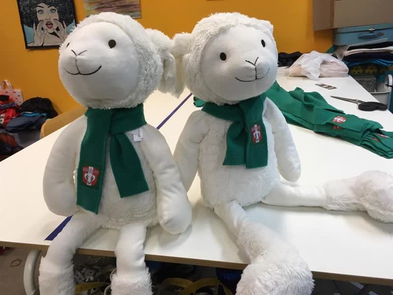 Dat leuke idee moest natuurlijk nog wel worden uitgevoerd, want 500 schaapjes bestellen is één ding, maar het moesten nog wel echte FC Dordt-schaapjes worden. Er werden meters stof gekocht en het logo van de club werd geprint. Die logo’s zijn door mensen van de dagbesteding bij Studio Blijmakers in Dordrecht op fleece sjaaltjes voor de schapen gestikt. Die zijn door de leerlingen van het speciaal onderwijs (SPON) en vrijwilligers van de Supportersvereniging bij alle schapenknuffels omgedaan.