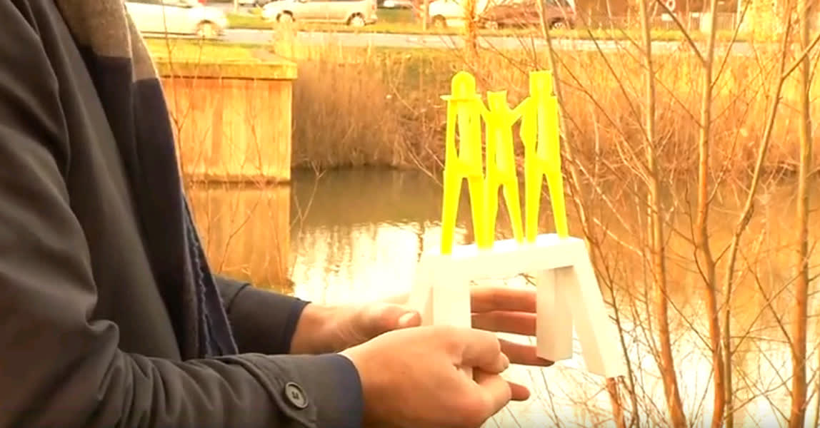 Rik van der Linden heeft maandagochtend een miniatuur versie van het Schapenkoppie beeld dat bij een afrit van de A16 staat gekregen. Het 'Schapenkoppiekoppie', gemaakt van plastic. Maar niet zomaar plastic, Het is gemaakt van gerecycled plastic uit de stad.