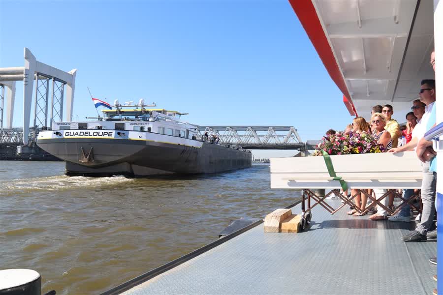Een bijzondere laatste groet voor de op maandag overleden Dirk Werkman, oprichter van de Dordtse rederij Dari. Schepen van het bedrijf voeren vrijdagochtend achter elkaar langs bunkerstation Fiwado en lieten hun scheepshoorn klinken.