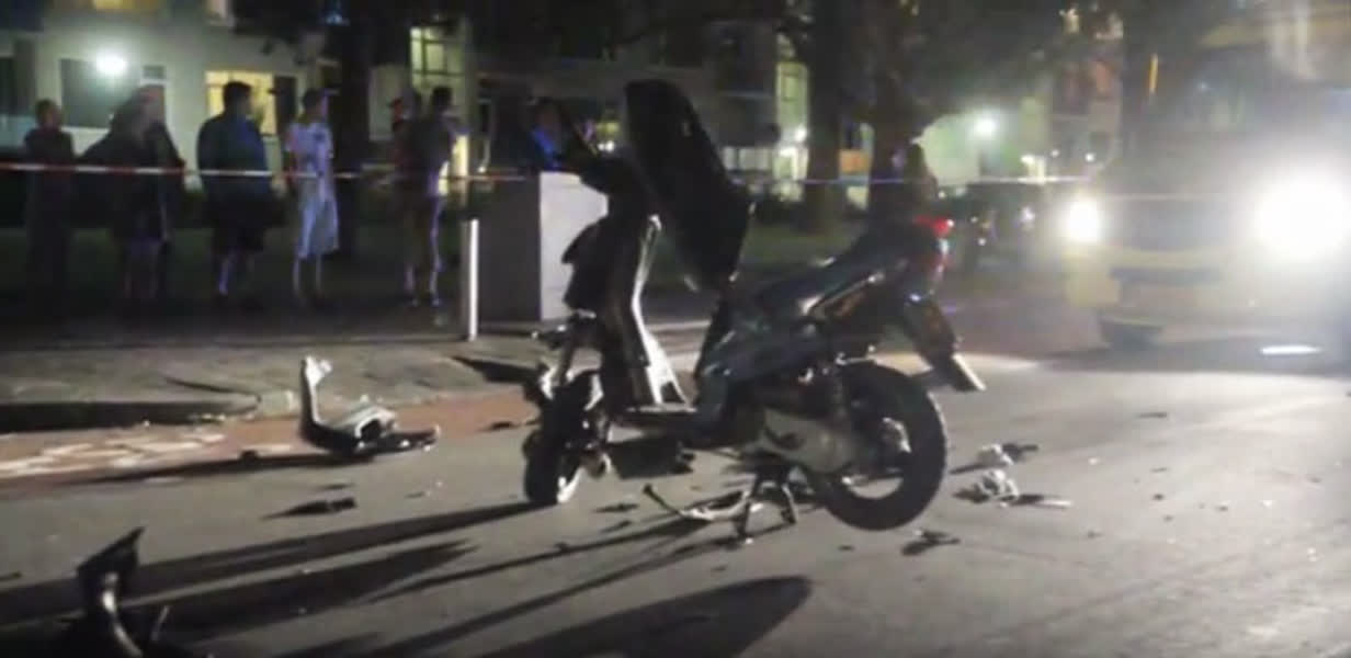 Het ongeluk gebeurde op de Maarten Harpertszoon Trompweg. De scooter knalde eerste tegen de zijkant van de ene auto en vervolgens tegen de voorkant van de andere.
