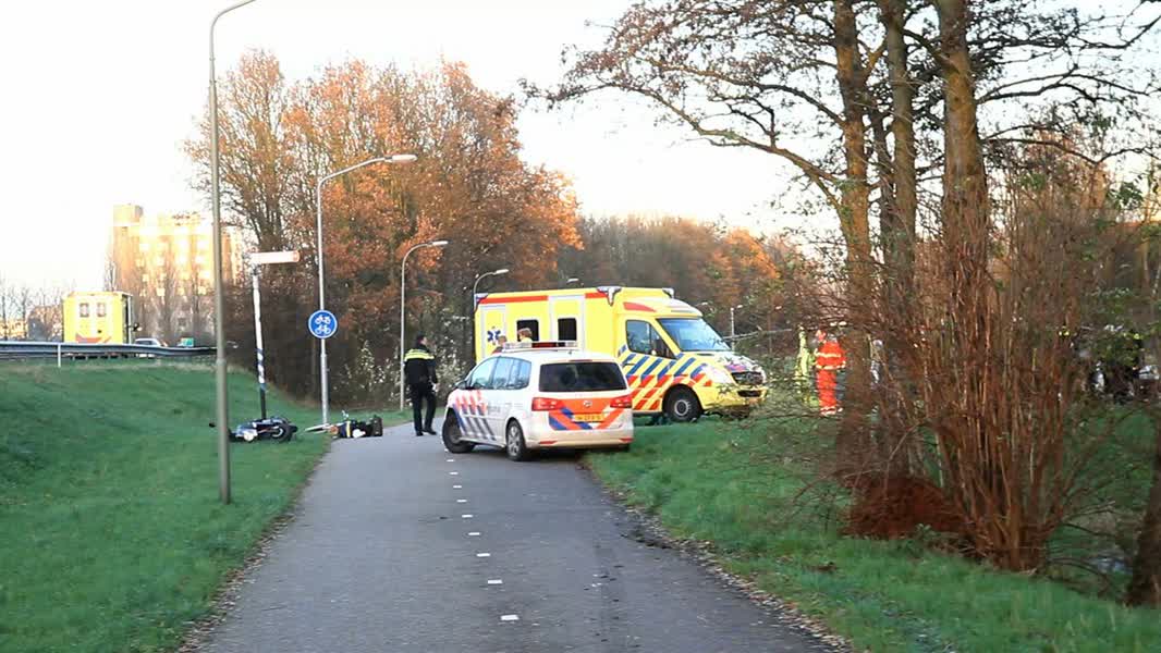 Bij een aanrijding tussen een fiets en een scooter is de bestuurder van de scooter gewond geraakt.