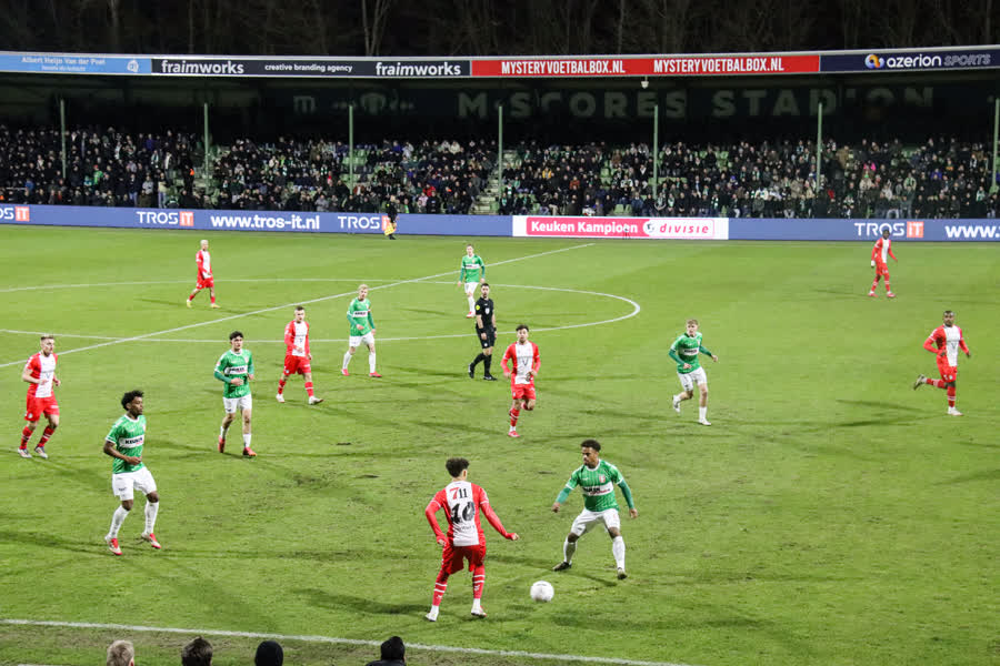 Verder was de eerste helft een pingpong-duel waarin de beste mogelijkheden voor de thuisclub waren. FC Emmen, tijdens de afgelopen play-offs nog de laatste ploeg die de Krommedijkclub in eigen huis klopte in een officiële wedstrijd, stelde erg teleur en schoot in het eerste bedrijf geen enkele keer op doel.