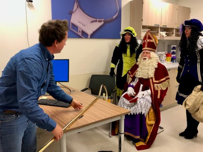 Het ziekenhuis laat weten dat niemand langer heeft moeten wachten door het scannen van de staf. En Sinterklaas is gelukkig niet gewond geraakt bij zijn onhandige actie.