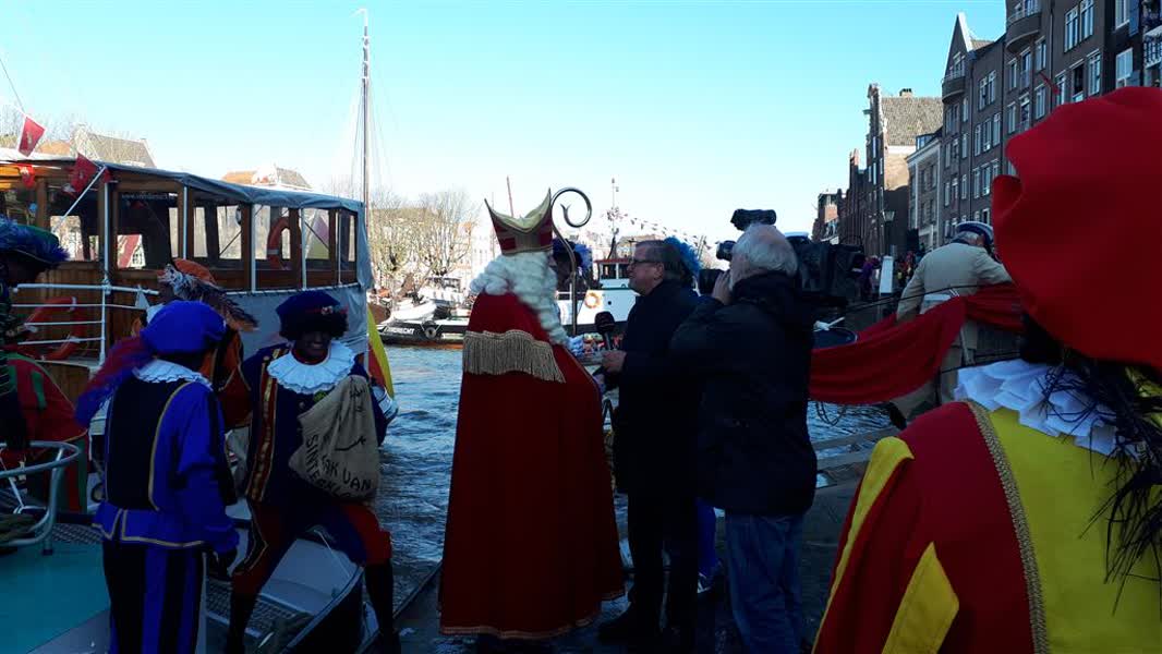 Het duurde wat langer dan verwacht, maar Sinterklaas en zijn pieten zijn zaterdagmorgen toch weer in Dordrecht aangekomen. Een van de boten kreeg motorpech, waardoor een sleepboot moest worden ingezet om de kade te bereiken.