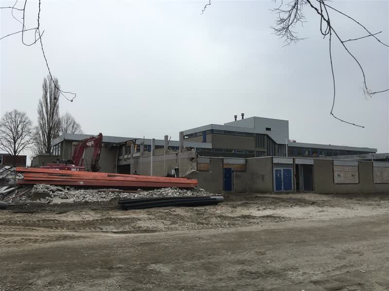 De sloop van het oude schoolgebouw langs de Jan Ligthartlaan is eindelijk gestart. Het gebouw staat al lange tijd leeg en is inmiddels flink verpauperd. Op de plek van de school komen woningen.