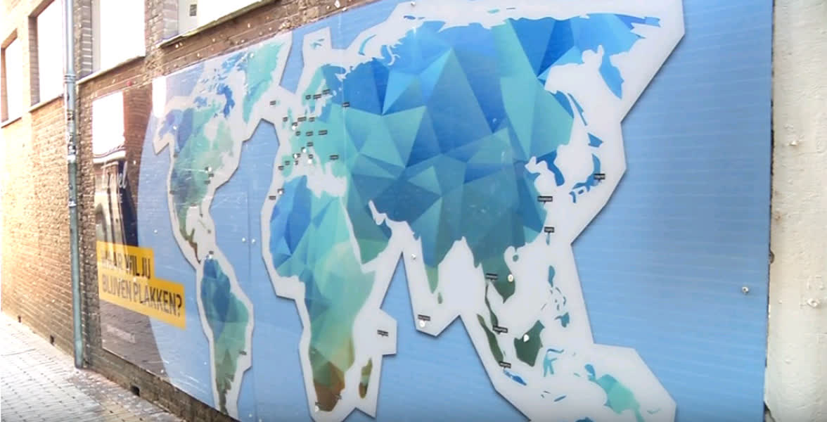 Afgelopen vrijdag werd er door een reisbureau een wereldkaart opgehangen over een groot deel van de muur. Hier kan men met kauwgom aangeven wat een favoriete reisbestemming is.