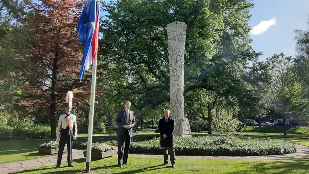 Burgemeester Wouter Kolff en Peter van der Leer, voorzitter van het Oranjecomité, hebben dinsdagochtend de vlag gehesen in park Merwestein om te vieren dat we in Nederland in vrijheid leven. Bevrijdingsdag zou vandaag met een speciaal programma gevierd worden omdat het 75 jaar geleden is dat Nederland werd bevrijd. Dat kon door de coronamaatregelen niet doorgaan.
