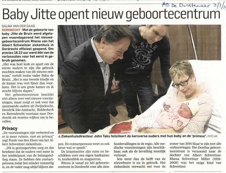 Een bijzondere dag, afgelopen woensdag in het Albert Schweitzer ziekenhuis. Het Rhenageboortecentrum bestaat 10 jaar.