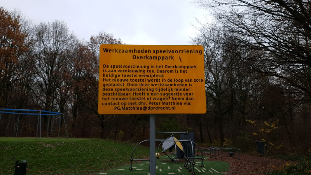 De toestellen moeten daar vanwege veroudering worden vernieuwd. Daarom is de speeltuin tijdelijk iets minder bruikbaar.