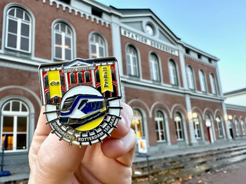 Spoorlijn Dordrecht-Rotterdam bestaat 150 jaar; NS deelt herdenkingsspeldjes uit