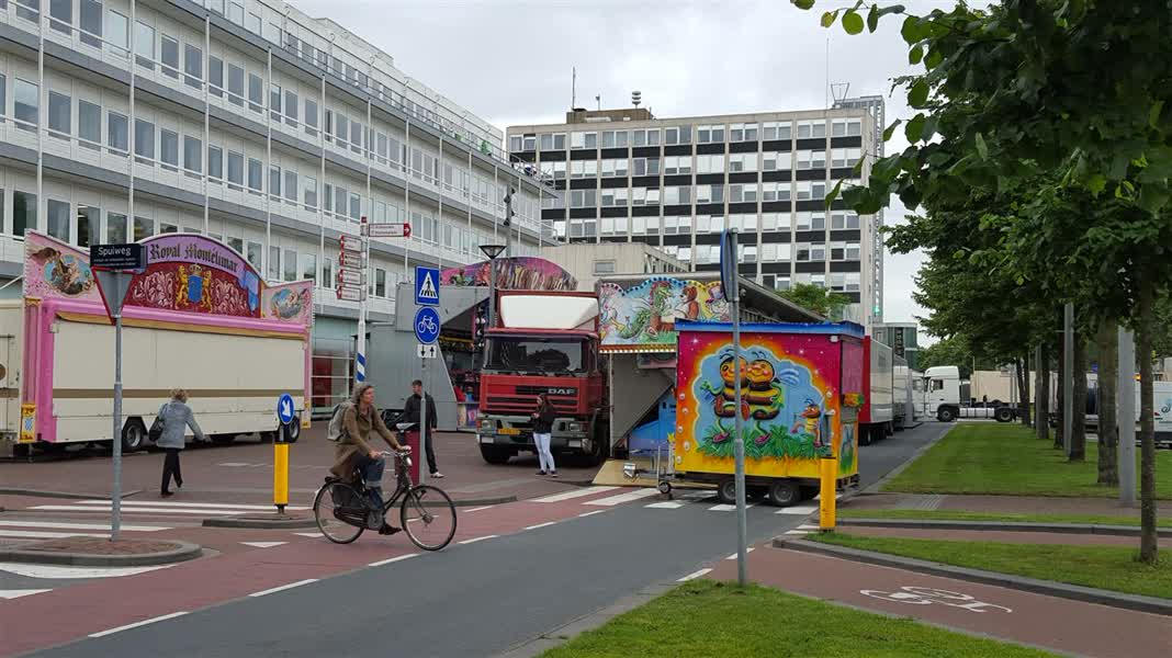 De Spuiboulevard is sinds dinsdagavond dicht voor verkeer. Exploitanten zijn gestart met de opbouw van de zomerkermis. De opening is zaterdag.