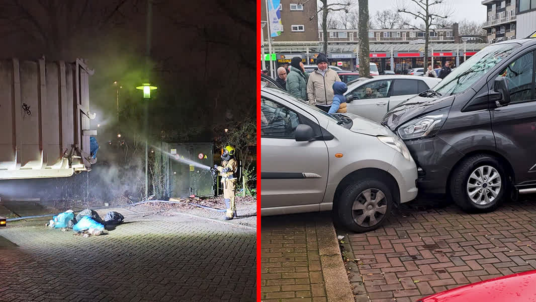 containerbrand in Wielwijk en aanrijding in Crabbehof fotomontage: RTV Dordrecht