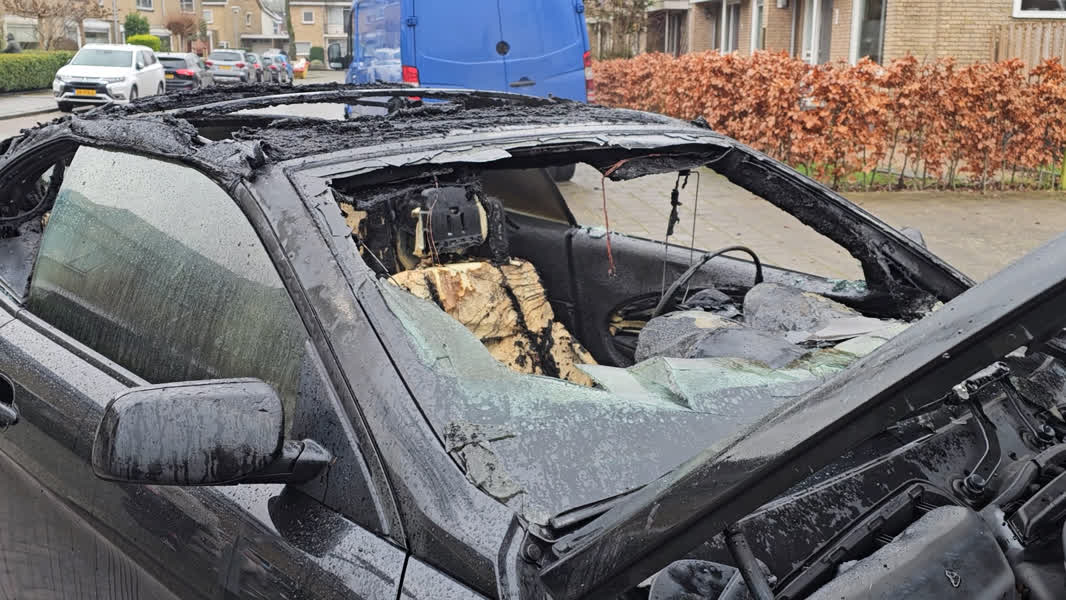 De brandweer was snel ter plaatse, maar kon niet voorkomen dat het interieur van de wagen volledig uitbrandde. Voor zover bekend raakte niemand gewond.