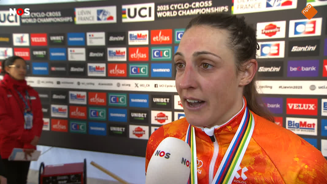 Lucinda Brand voor de camera van de NOS na afloop NOS