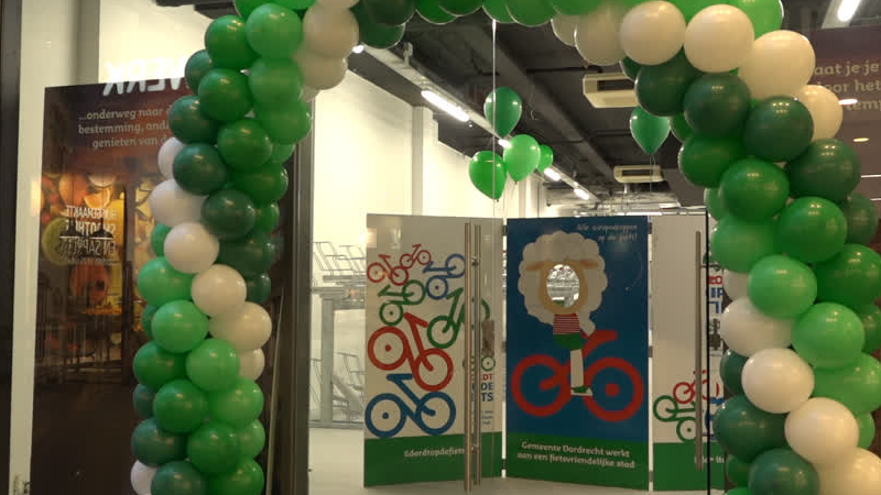 De nieuwe fietsenstalling aan de achterkant van station Dordrecht heeft plaats voor 1800 fietsen. Te...