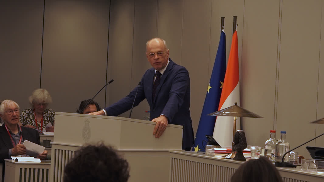 Na een openingsrede van Eerste Kamervoorzitter Jan Anthonie Bruijn mogen de leerlingen zelf het woord nemen. In de tijdelijke locatie van de Eerste Kamer, het Binnenhof wordt nog altijd verbouwd, vliegen termen als 'vrijheid van meningsuiting', 'republikeinen tegen monarchisten' en 'burgerschap' over de witte tafels. Thema's die tijdens het leven van Johan de Witt al belangrijk waren.