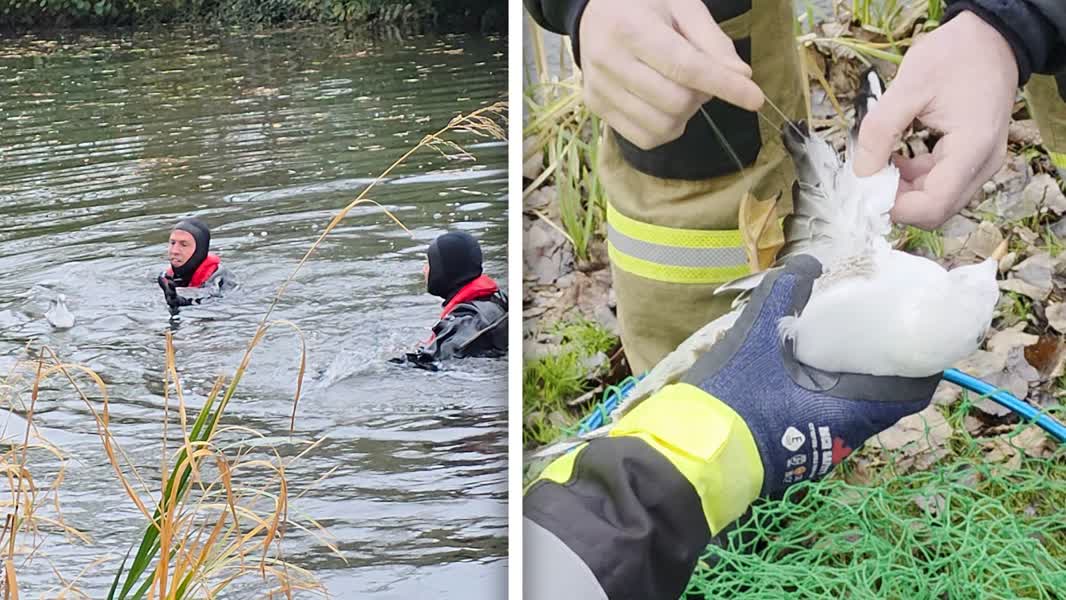 Duikers rukken uit om meeuw uit benarde situatie te redden