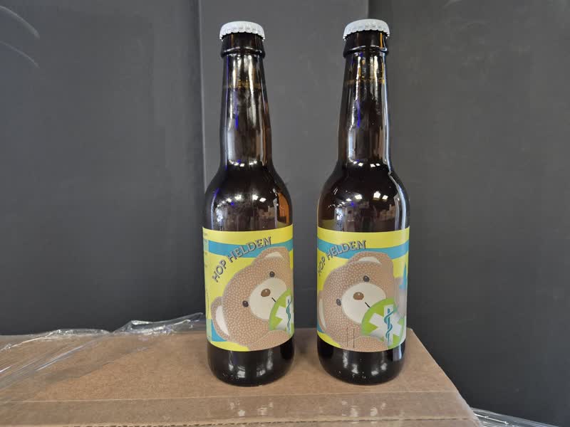Het biertje is te herkennen aan zijn opvallende logo: een knuffelbeertje dat een ambulancevestje draagt. Het is speciaal ontworpen voor de actie: “Dit is het knuffeltje dat mensen meekrijgen als ze via de stichting met de ambulance zijn meegereden”, vertelt Rien.