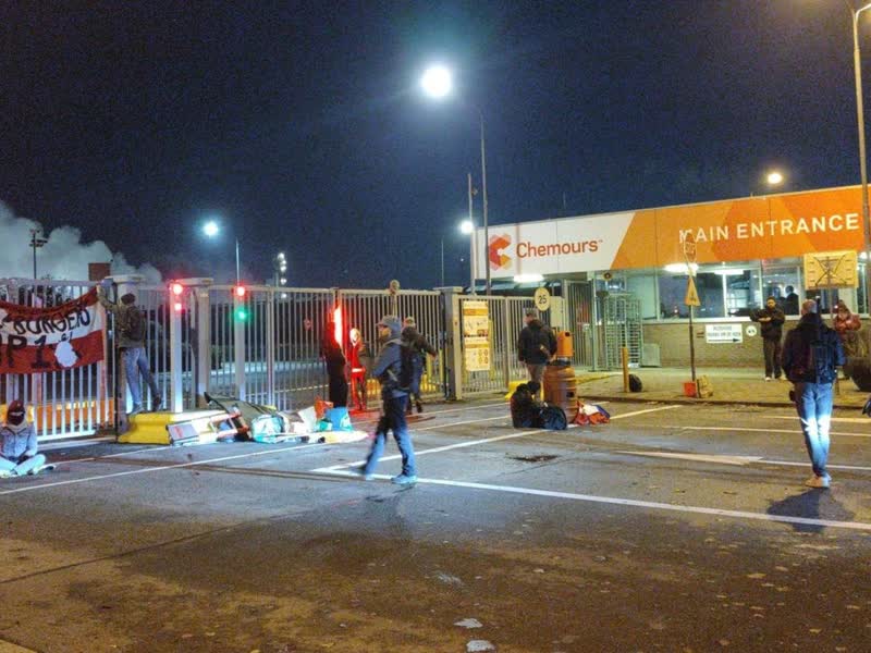 Het is de eerste keer dat Chemours doelwit is van de actiegroep. Volgens de politie zijn de actievoerders over de hekken rondom het fabrieksterrein geklommen en houdt de brandweer een oogje in het zeil om te zorgen dat het protest veilig verloopt.