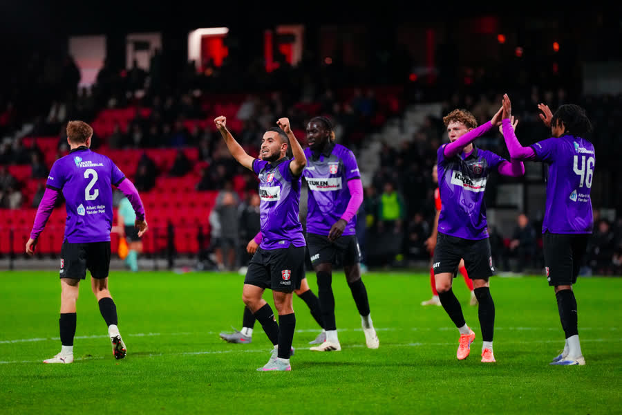 De 2-1 blijft tot het eindsignaal op het bord staan, waarmee FC Dordrecht na een reeks mindere resultaten eindelijk weer drie punten pakt.