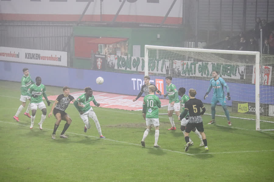 Liam Bossin, de afgelopen weken in verband gebracht met een overstap naar Feyenoord, was er nog altijd bij. Dat gold niet voor geblesseerden Sem Valk, Rocco Robert Shein en Devin Haen, terwijl de afwezige Jop van der Avert waarschijnlijk vertrekt bij de club.