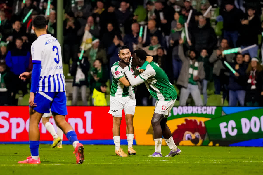 Opstelling FC Dordrecht: Biai; Van Aken, Drakpe (Valk/71), Woudenberg, Hilton (Pynadath/90); Bae, Sunderland, Van Asten (Vugts/83); Afaker (M'Bemba/83), Eduardo, Venema (Carillo/83)