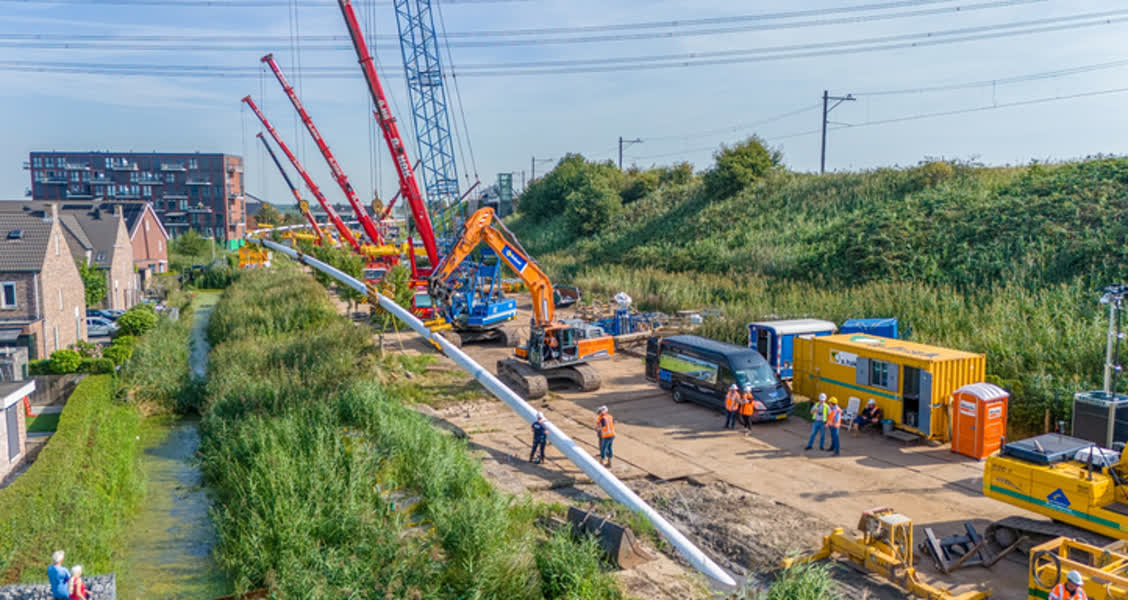 In augustus vorig jaar werden de eerste voorbereidingen voor de aanleg van het nieuwe warmtenet getroffen. Dat verliep niet zonder slag of stoot. Zo lukte het door verzakking van de grond in eerste instantie niet om de pijp, die de warmte van Dordrecht naar Sliedrecht brengt en meer dan een kilometer lang is, onder de rivier door te trekken. Er werden daarom extra verstevigde damwanden geplaatst.