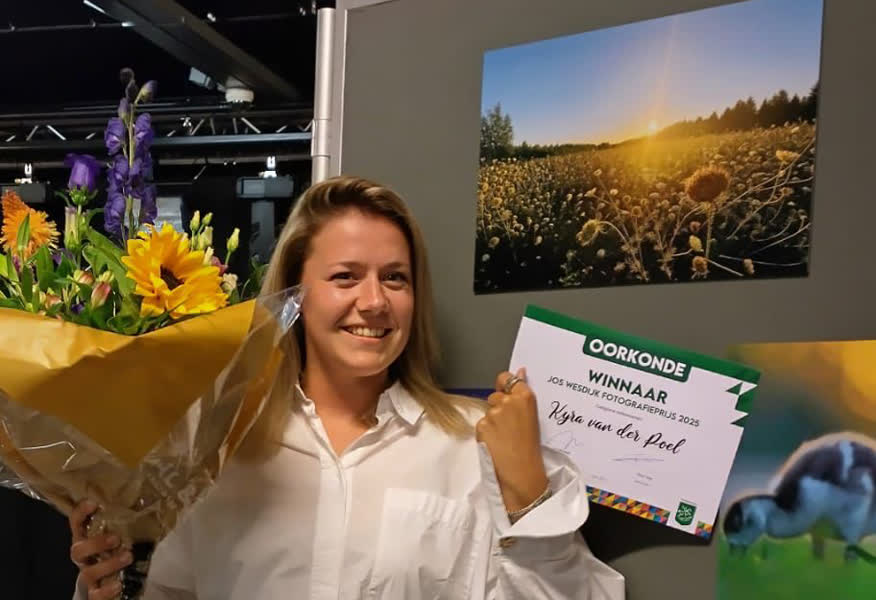In evenementenlocatie De Loods in Ridderkerk werd Kyra van der Poel maandag uitgeroepen tot winnaar in de categorie volwassenen met haar foto in het Waalbos. Ze legde een veld vol met wilde peen vast. Kyra kreeg de prijs uit handen van wethouder Fleur Stip. Volgens de jury laat haar foto op een creatieve manier zien hoe mooi Ridderkerk is.