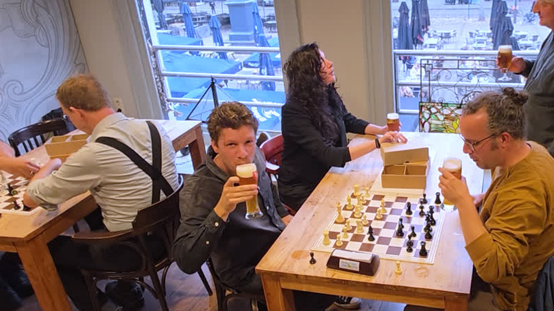 Een schaaktoernooi tijdens een kroegentocht. Het klinkt als een bijzondere combinatie, maar zaterdag...