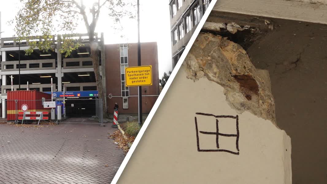 De Spuihavengarage ging half april uit voorzorg dicht, nadat tijdens een preventief onderzoek haarscheurtjes in het beton werden ontdekt. In eerste instantie leek het om een tijdelijke sluiting te gaan: de herstelwerkzaamheden zouden ongeveer zeven weken duren.