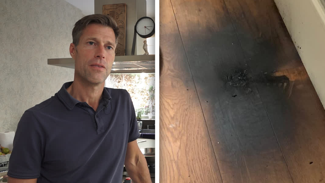 Zijn zoon had het longboard naar de woonkamer gehaald, maar toen hij het apparaat vervolgens optilde ging het vreselijk mis. “Hij ontplofte hier”, zegt broertje Tobias terwijl hij wijst naar een gedeelte van de woonkamer. “Ik hoorde een harde knal en schrok heel erg. Ik zag een vuurbal met vonken. Ik was in paniek, want ik kon niet wegkomen.”
