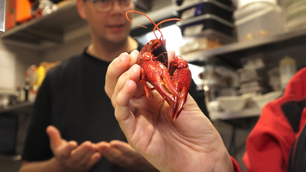 “Een leuk voorbeeld van een verrassend gerecht is onze tortelloni met rivierkreeftjes. Deze kreeftjes komen gewoon uit de sloot. Wanneer wij onze gasten dit gerecht voorschotelen, is het echt een gespreksstarter. Ze herkennen de kreeftjes vaak van hun wandelingen langs de waterkant. Dat is voor hen soms ook wel even slikken", vertelt Molenaar terwijl hij een rivierkreeftje pelt.
