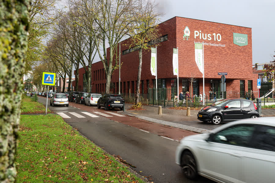 Nederpelt ziet die maatregel ook graag op de Brouwersdijk ingevoerd. Maar er is volgens hem meer mogelijk. “Er kan veel duidelijker gemaakt worden dat hier een school is.” Van der Star heeft ook nog een wens: een extra zebrapad richting de ingang van Pius 10, dat in mei verhuisde vanuit het schoolgebouw aan de andere kant van de weg.