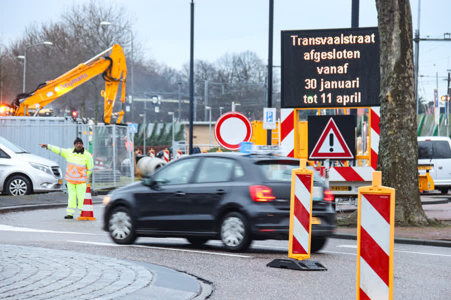 De Dordtse Transvaalstraat is de komende tijd afgesloten voor al het autoverkeer. Afgelopen week was het al omrijden geblazen richting het station, sinds donderdag geldt dat voor beide richtingen.