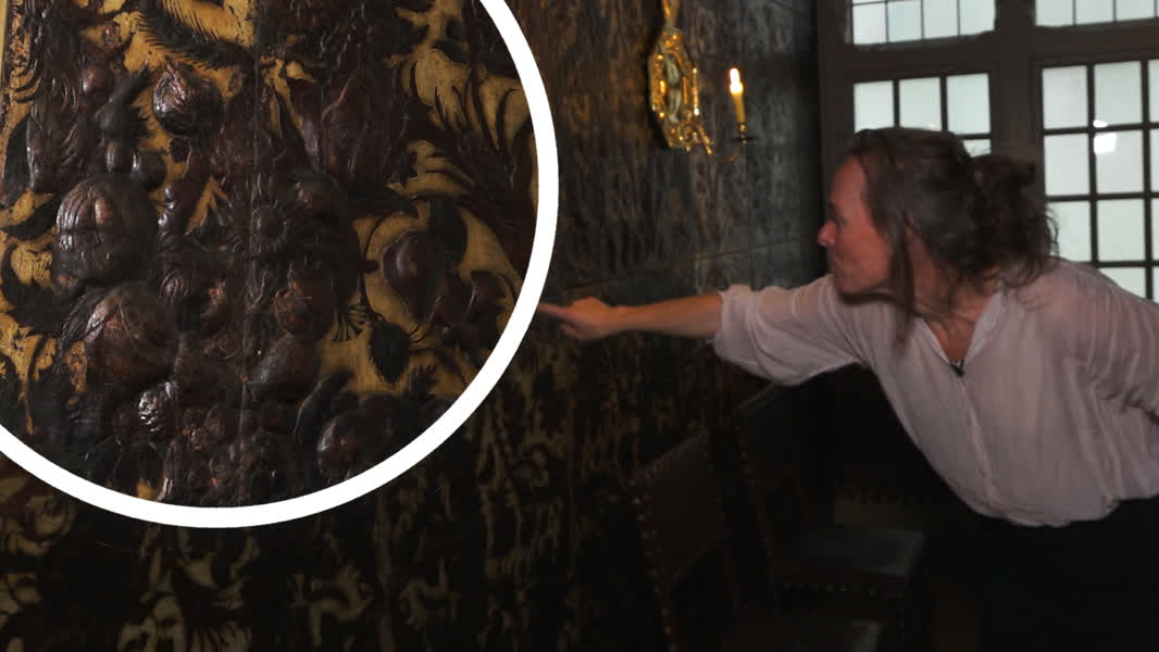Het interieur van de kamer kwam in 2001 na vele omzwervingen terecht bij het Huis van Gijn. Het is bijzonder dat de onderdelen nog in zulke goede en authentieke staat zijn, legt projectcoördinator Vera Jorissen uit. “Dat komt niet heel vaak voor. Het goudleerbehang zelf, het haardvloertje, de betimmering en de plafondstukken. Ze zijn allemaal nog hetzelfde als driehonderd jaar geleden.”
