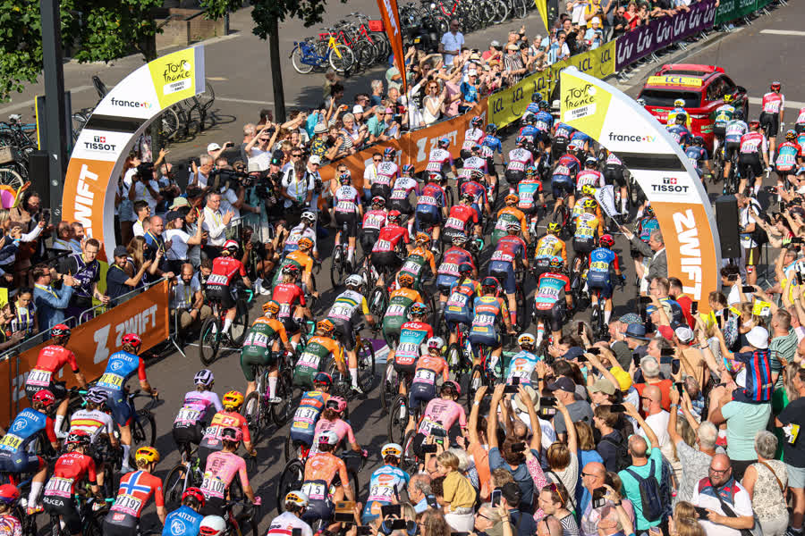 Wielerliefhebbers of niet: de Dordtse straten stonden dinsdag vol met publiek voor de etappestart va...